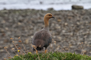 Southern Giant Petrels patrolled the channel & I also recorded at least 3 Southern Fulmars. Imperial Cormorants were in good numbers with smaller number of Rock Cormorants as well. Black faced Ibis foraged on the pastures with plenty of Upland Geese & 2 Kelp Geese. Amazingly I found 2 Ashy-headed Geese as well. What a beautiful goose! Pairs of Flightless Steamer Ducks loafed offshore, with over 30 Crested Ducks & 4 Chiloe Wigeon. Overhead 2 Turkey Vultures; 2 Southern Caracaras & at least 8 Chimango Caracaras patrolled looking for easy meals.