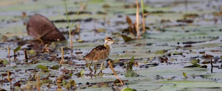 We managed to see a lovely Lesser Jacana on the lily pads of the lagoon. Also present were ten very mobile African Pygmy Geese, which manage to elude the camera.